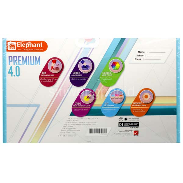 ตราช้างดินสอสีไม้แท่งยาว พรีเมี่ยม 4.0 36 สี/กล่อง ราคาขายต่อกล่อง