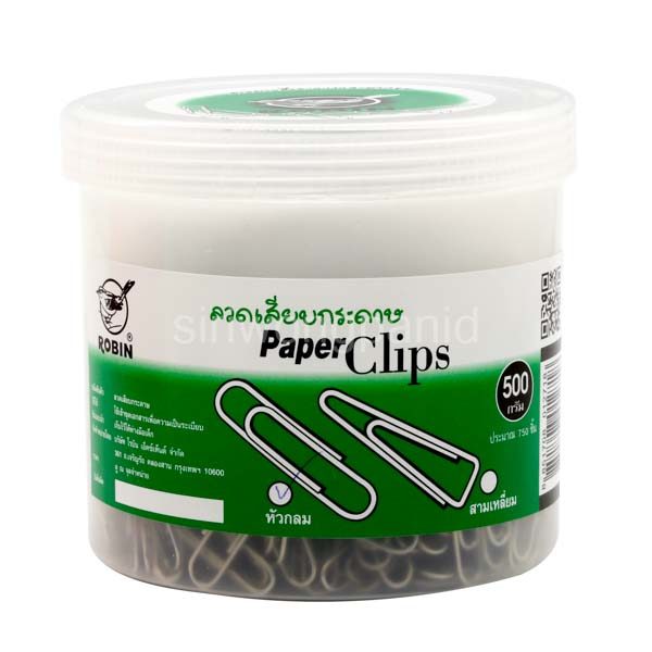 ลวดเสียบกระดาษ หัวกลม สีเงิน 750ตัว/กระปุก ROBIN