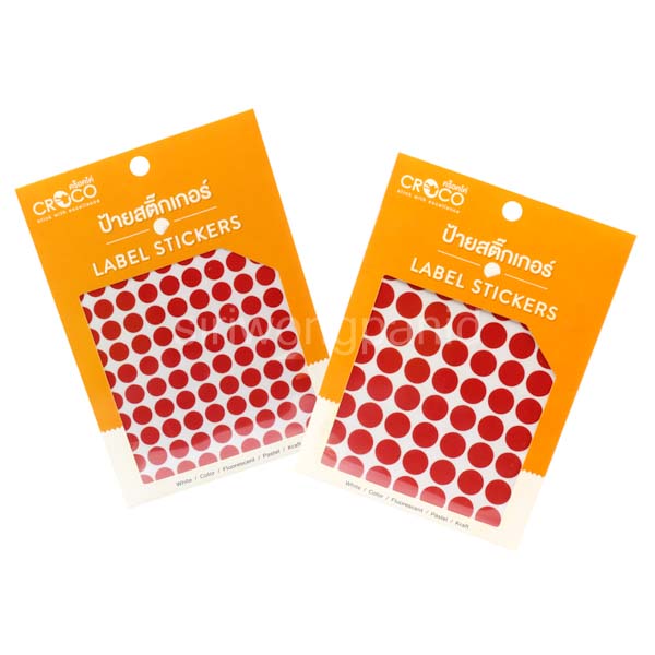 สติ๊กเกอร์สีธรรมดา วงกลม สีแดง คละขนาด Croco
