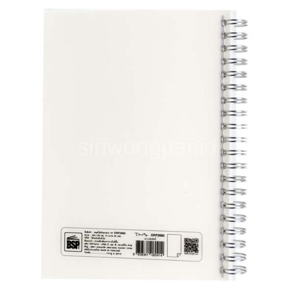 สมุดโน๊ตริมลวดปก PP ขนาด 128×182มม. 70แกรม 80แผ่น ไม่มีเส้น BSP #ORP2680